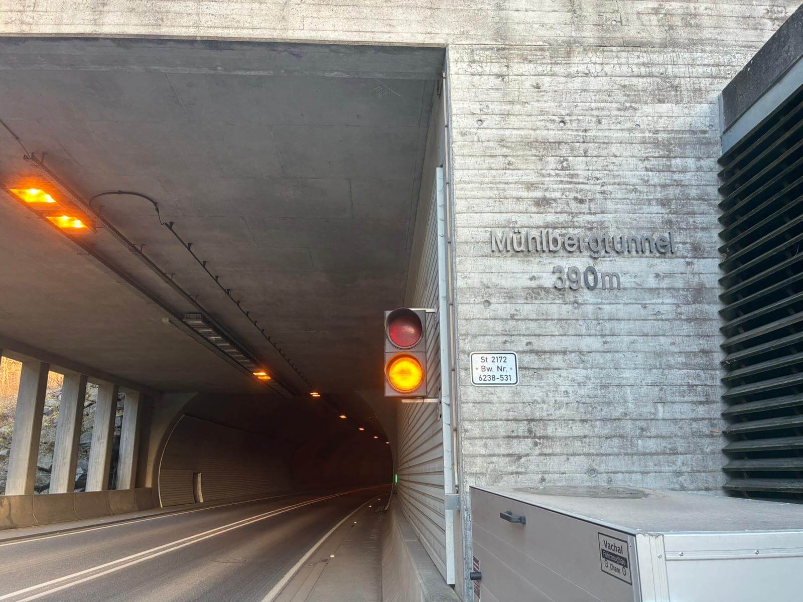 Heute zwischen 18:30 und 19:00 Uhr kommt es wegen Wartungsarbeiten zu drei kurzen Vollsperrungen im Mühlbergtunnel (St 2172).