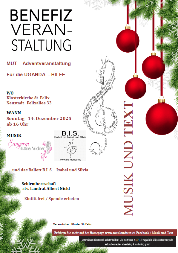 MUT - Adventveranstaltung für die UGANDA - HILFE im Klosterkirche St. Felix in der Felixallee 32. Ab 16 Uhr gehts los.