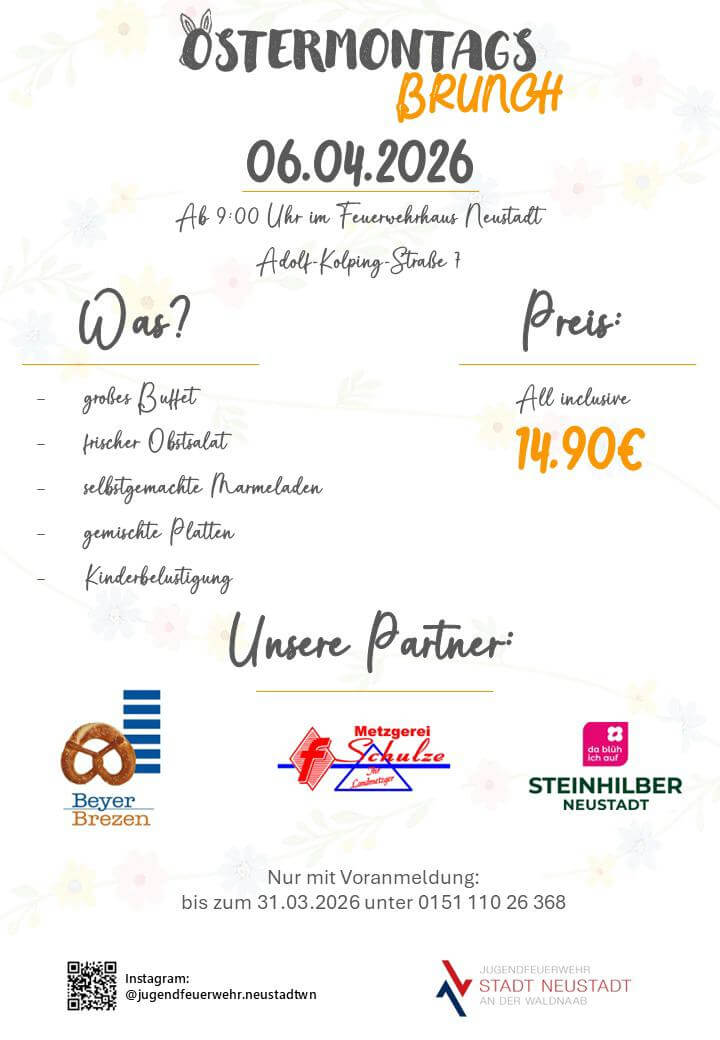 Die Jugendfeuerwehr Neustadt lädt euch herzlich zu ihrem gemütlichen Ostermontags-Brunch ein!