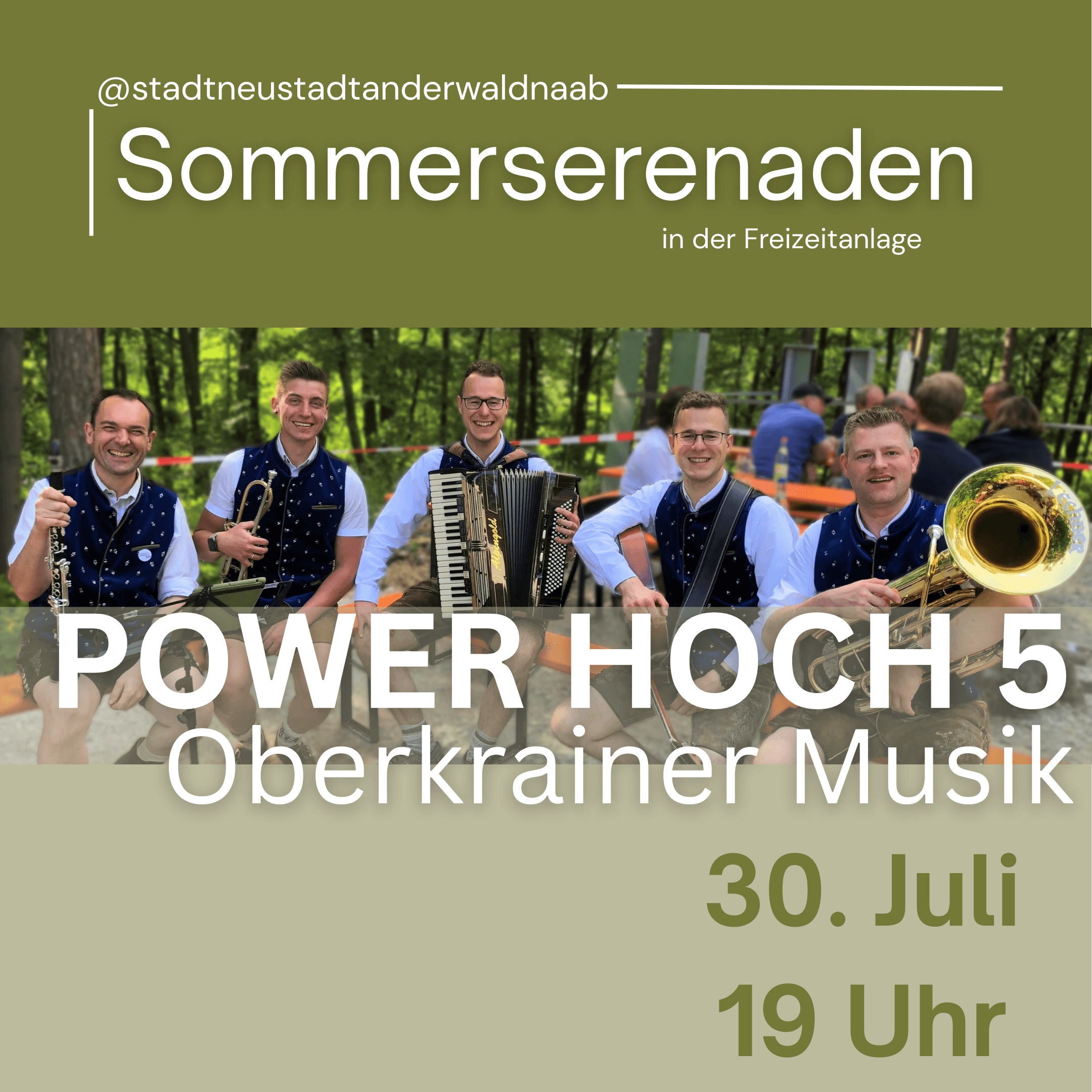 Genießen Sie gemeinsam mit Freunden, Familie und Nachbarn Live-Oberkrainer Musik von POWER HOCH 5 unter freiem Himmel und lassen Sie den Abend bei leckeren Speisen und kühlen Getränken ausklingen. Für die Bewirtung vor Ort sorgt das Restaurant Kuhlemann.